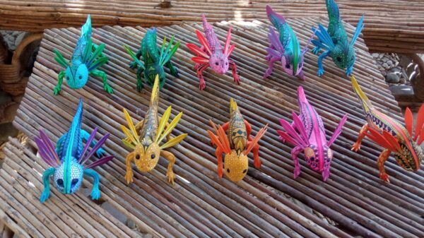 Alebrijes Ajolote de madera, pintado y tallado a mano