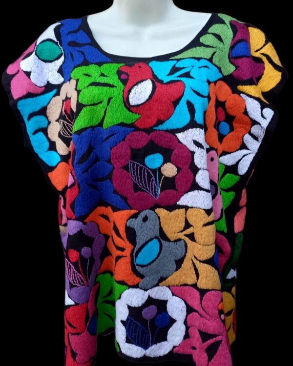 Blusa dama modelo aves, bordada 100% a mano con hilo de algodón