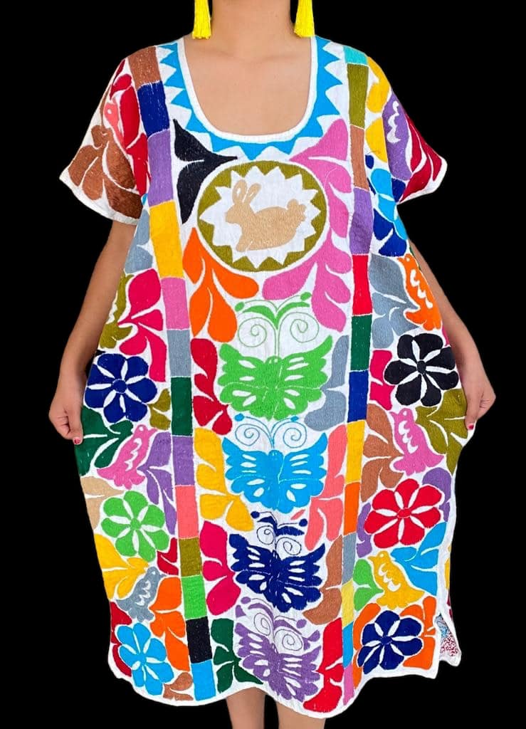 Huipil largo, modelo venado, bordado a mano con hilo de algodón