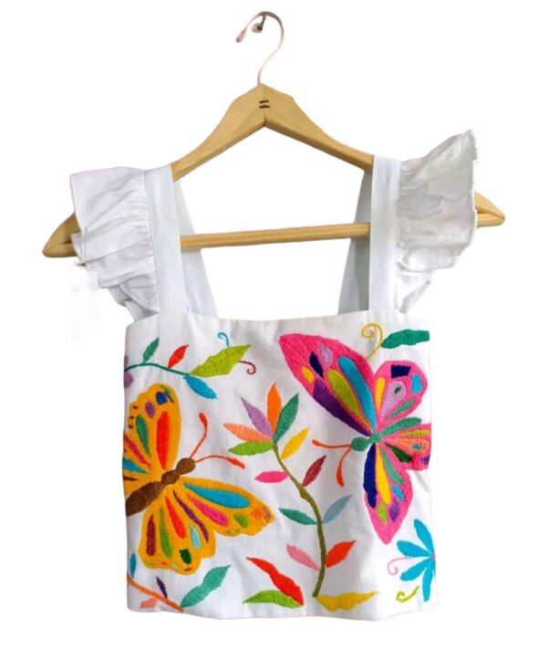 Topcrop en bordado Tenango a mano con hilo de algodón colores